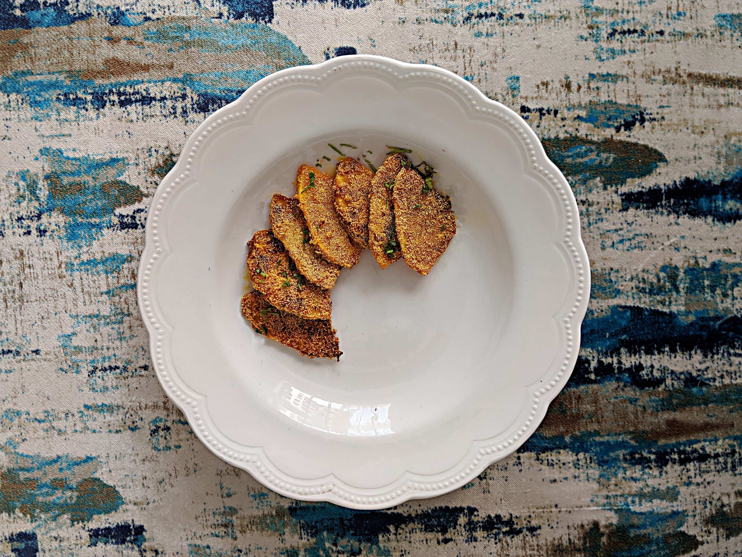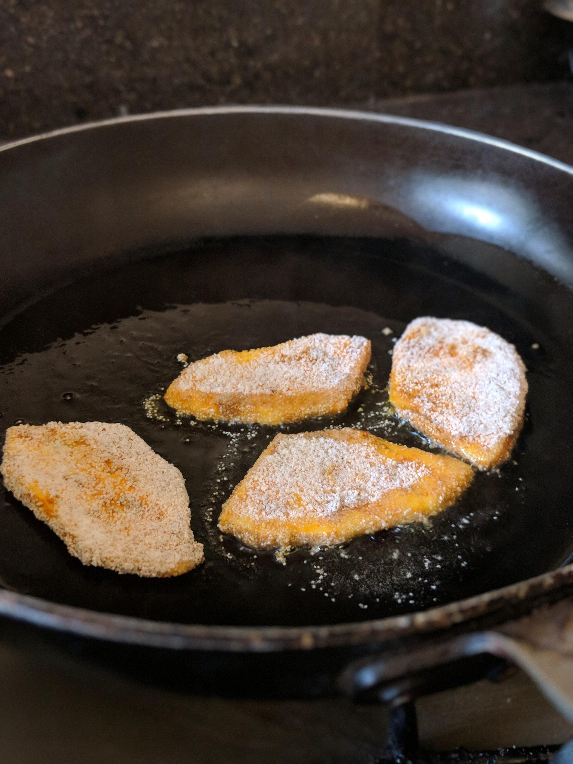 You will know the fodi is cooked when you see a beautiful golden brown sear on all sides. On taking a bite the hard crunchy exterior should give way to a chewy, almost succulent bite of the fruit. It should not feel hard.