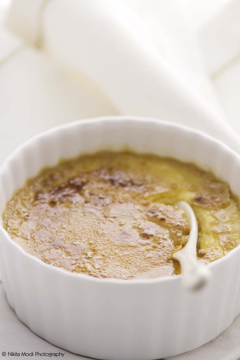Alternately, you can spread the sugar and pop under your oven grill (top rack) or your broiler to get the same effect. I have, of course, used a butane chef’s torch (which I sneakily use for various other quick fix’s) to caramelize the sugar but the caramel in oven turns out as good.