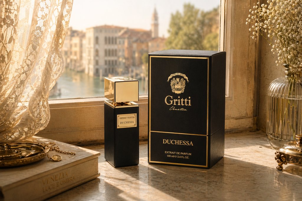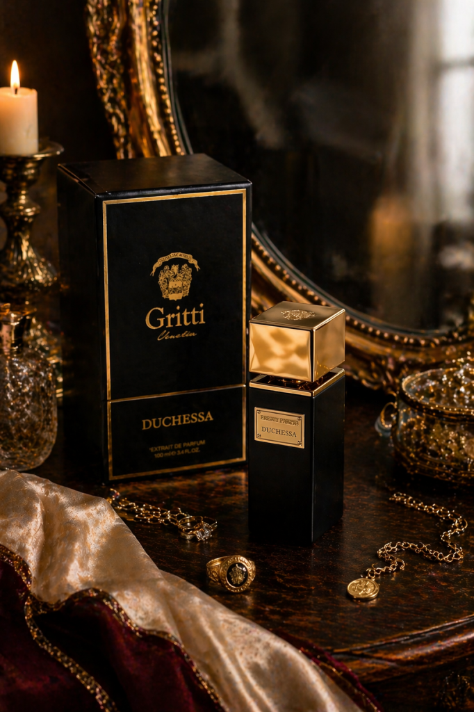 The Duchessa belongs to the Gritti Privé collection — their most uncompromising line. Gritti Privé encapsulates the perfumer’s style and the spirit of the Serenissima — majestic and refined. The collection reflects the bond between the Gritti dynasty and Venice itself. And here’s the compositional detail that separates Privé from everything else they do: each creation within the Privé line consists of two contrasting accords that intertwine with surprising nuances, giving each extrait de parfum two main directions, two extremes, two personalities. This dual-accord approach is not just a marketing conceit — you feel it on the skin. The Duchessa genuinely pulls in two directions simultaneously, and the tension between them is exactly what makes it interesting.