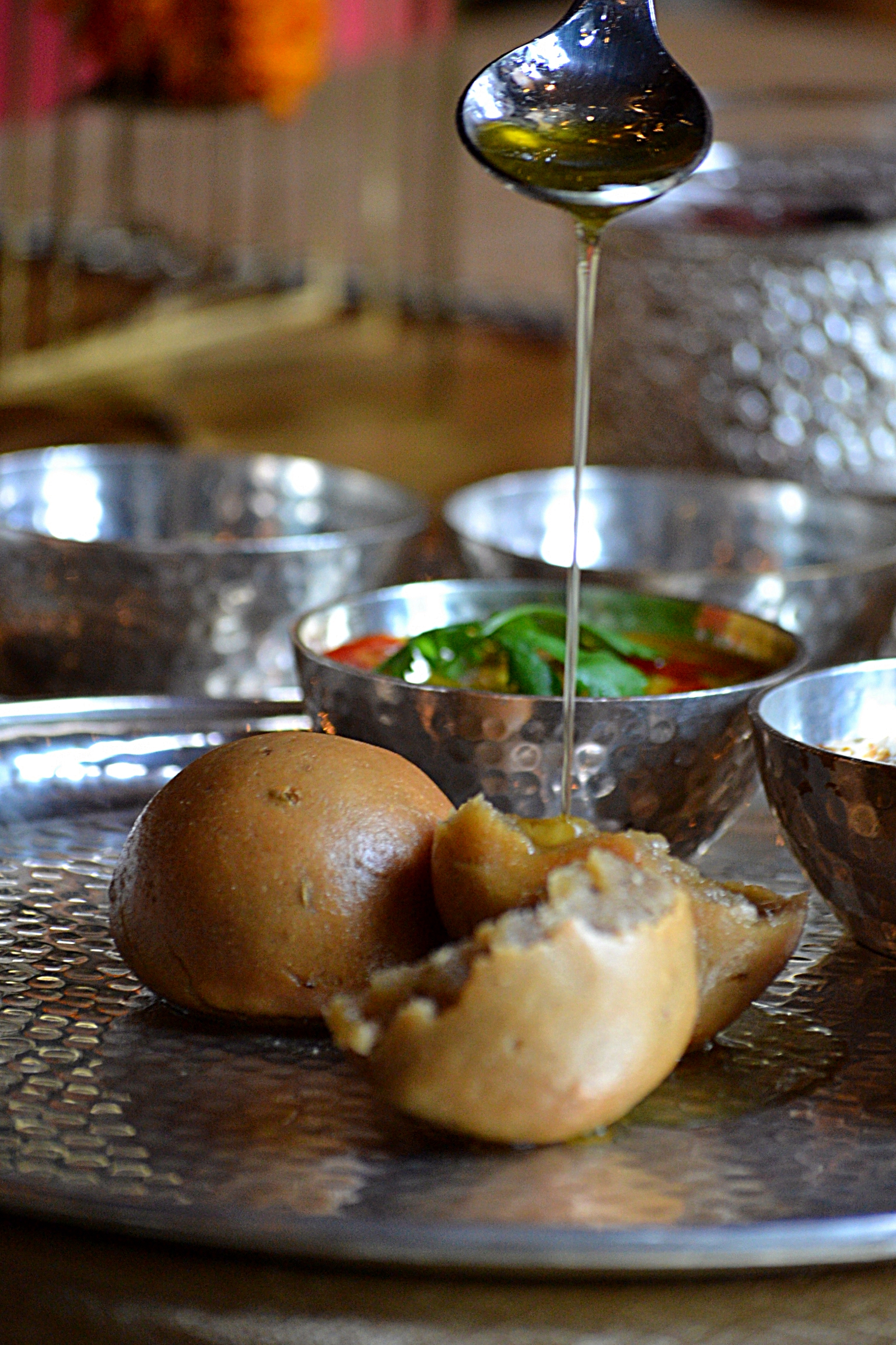 I tucked in to the spread heartily that night, the afternoon was where I got the actual taste of behind-the-kitchen scenes. Chef Gaurav had put together a showcase of a popular Rajasthani dish called Dal Baati Churma. I had the privilege of having this dish for the first time in New Jersey at a friends house who’s wife was a Rajasthani. She would make this dish every public holiday and it would be a community affair. My affection for ghee (without which this dish is incomplete) was akin to that of hugging a skunk but once I had a taste of fresh homemade ghee poured hot over the Baati and then taking spoonfuls of the Dal (made of 5 lentils), with bites of the sweet churma, I never looked back. This took me back to 2006 when I had tried it for the first time. (The other time I had indulged in it was when I visited ChokhiDani in Jaipur about 5 years ago).