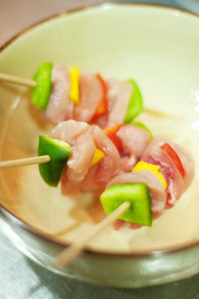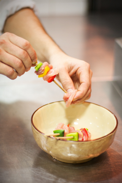 Skewered and ready to be taken on the table. They usually pre-grill it till about 90% and the last 10% is cooked on your table