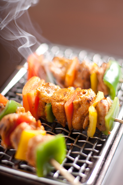 Placed in special tabletop grills
