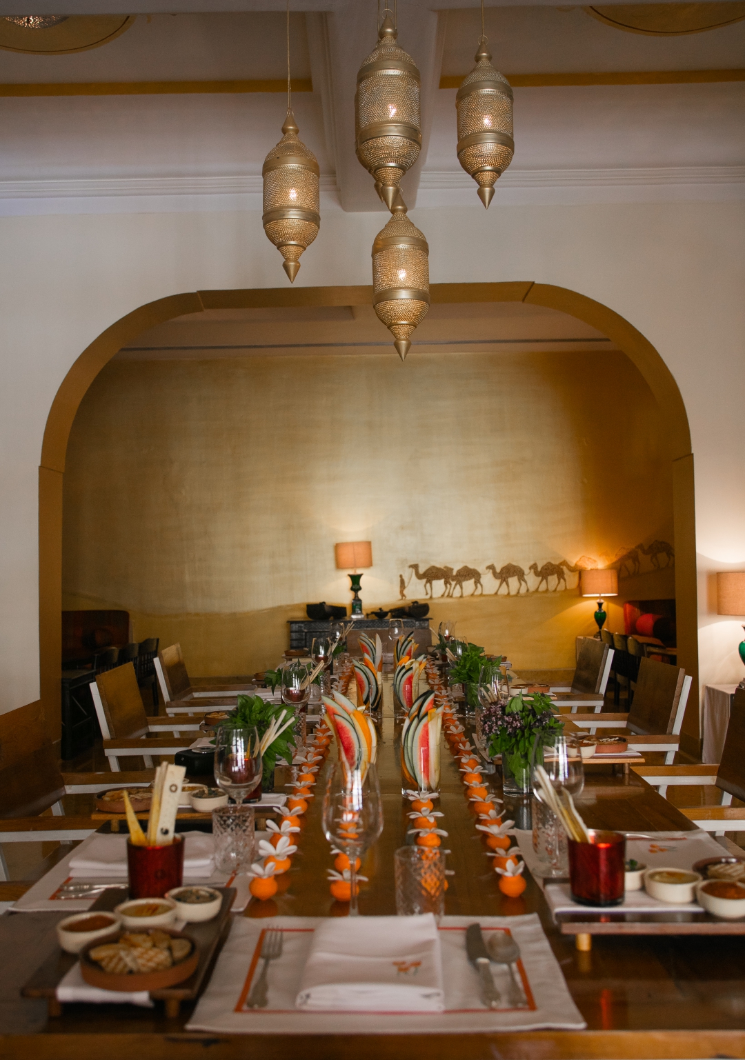 The second dinner, a lot more elaborate was an insight into the traditional flavors of state using ingredients and recipes replicated from the historic landscape of food they boast of, mainly a homage to the culinary traditions of travelers who crossed the Thar to Jaisalmer. Called ‘Thar Dinner’ at the Celebration Gardens, starts off with fine champagne, music and spirits, and continues to a a communal style meal (where you sit around plush mattresses under starlit canopies eating out of the same thali). The meal consisted of delicacies like tulsi murgh tikka to a creamy Sangri Salad (a popular desert bean turned into a creamy slaw), followed by Bolito Khargosh (Hare meat curry cooked over a wood fire), Nagauri Murgh (a seal cooked chicken cooked under sand covered with live coal), Pithod Curry (gram flour dumplings in a yoghurt based curry and a fennel flavored leavened bread called Khamiri Roti.