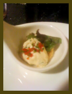 The Entrée: A crackling combination of butter chakli topped with fluffy hummus and garnish.