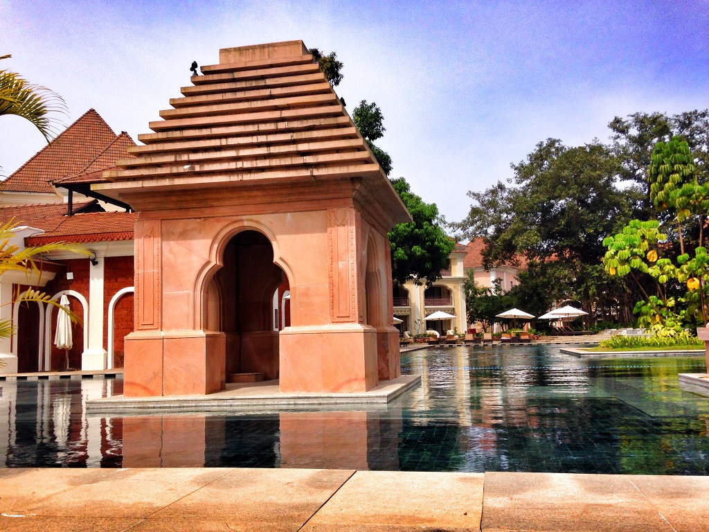 Just as its names goes – it is a “Grand” hotel. In a secluded area which sparkles with charming Goan homes on the outskirts, starts this towering edifice of a 17th century Indo-Portuguese inspired palace complete with different wings and baroque style high roofs. Each wing was done up phases wise (and they have their last 2 wings being done up shortly which will be a single room – or rather their presidential suites) and is distinct in its own little way. The rooms are large, luxurious and slightly cut away from the main building. This gives you immense privacy coupled with massive balconies which have an unobstructed view of the beach, their grounds (made up of about 28 acres in total) and pool. This way, you don’t pretty much leave the premises and have enough to do out there for a short weekend vacation or a summer holiday.