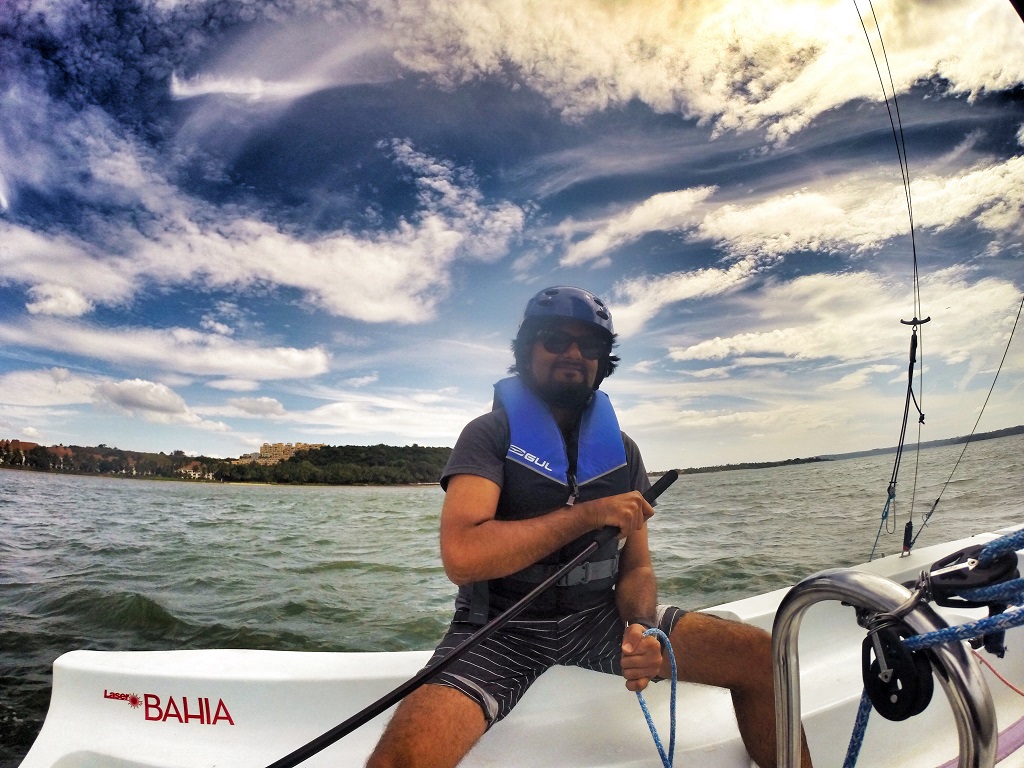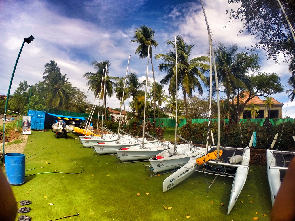 he hotel has a host of activities designed to create a holiday atmosphere. These activities are in-house curated and one of the most fun ones was their sailing offerings. This hotel is situated luckily in an area in Goa which is a cul-de-sac of sorts for the sea. Facing the Bambolim Bay, the sea is considered slightly more mellow and calm (except during monsoons which start about June all the way to September end) and is a hot bed of sea adventures and activities. Grand Hyatt has tied up with world renowned sailing whiz’ Aquasail, this is a real first time for sailing in India – a world class sailing center built to international technical specifications, fully equipped with best in class boats and equipment and complemented by a team of highly qualified and certified instructors from all over the globe. This penchant for the best quality and a vision to bring world class sailing to India is what makes the offering at the Aquasail Sailing Center at Grand Hyatt Goa so unique. I had my brush with the sailing boat, literally learning the ropes, as also the rig called the speed racer which is a crazy ride out in the ocean with a split hull which cuts through the water for an intense joy ride.